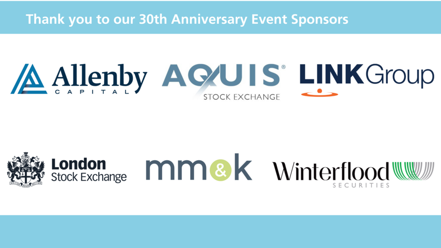 Thank you again to our 30th Anniversary event sponsors Allenby Capital, Aquis Stock Exchange, MM&K, Link Group, London Stock Exchange and Winterflood Secturities.