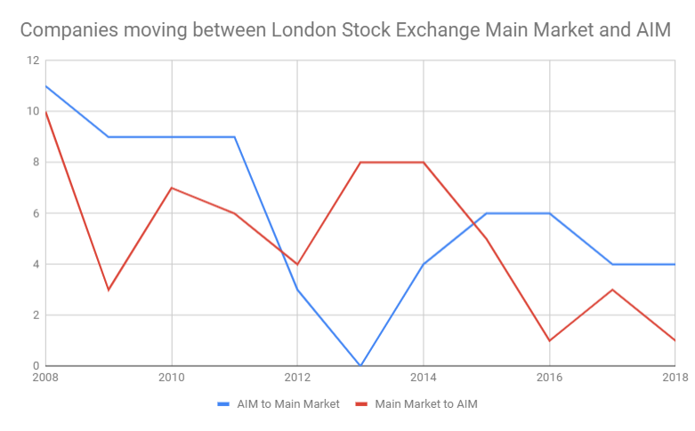 You can also see from the chart below that the number of companies making the switch from the Main Market to AIM has trended downwards over the past ten years: